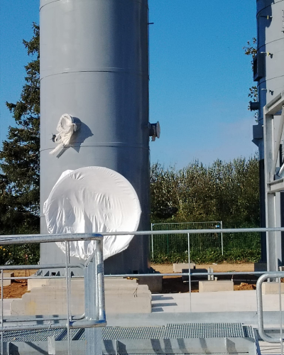(Cette partie est illustrée avec des photos de nos équipes posant des bâches sur des silos métalliques, pour montrer la précision et le sérieux de nos interventions.)